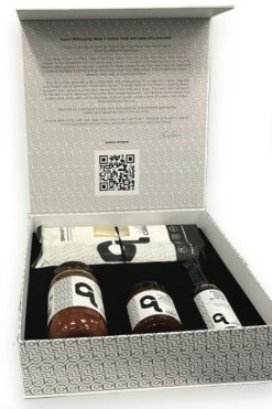 Celebrate ten years of culinary passion with Luca Ciano’s gift box, featuring artisanal spaghetti, fresh basil sugo, chilli-infused extra virgin olive oil, and a unique tomato & chilli jam. Presented in an elegant embossed box and accompanied by six original recipes, it’s a sophisticated choice for lovers of authentic Italian flavors.